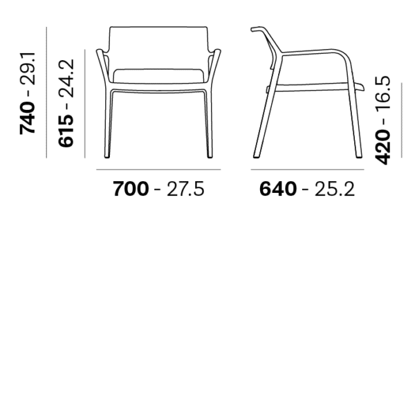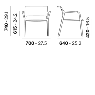 Dimenzija stolice 70x64x74h cm. Visina sjedišta 42 cm. Sjedište i naslon za leđa stolice od polipropilena. Ram stolice od polipropilena.