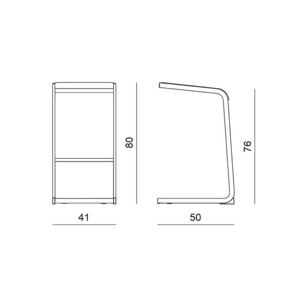 Barska stolica sa metalnom bazom od cijevi 30 x 15 mm lakirana u bijelu boju. Sjedište sa konstrukcijom od višeslojnog drveta breze punjeno hladno livanom pjenom tapacirano štofom kategorije B01 u žutoj boji (010). Dimenzije stolice 41 x 50 x 76-80 cm.