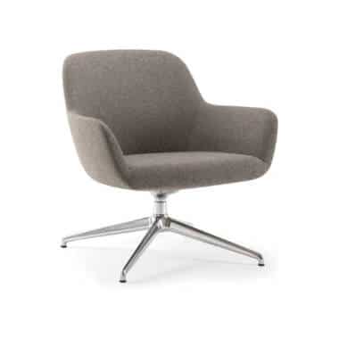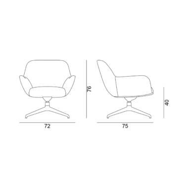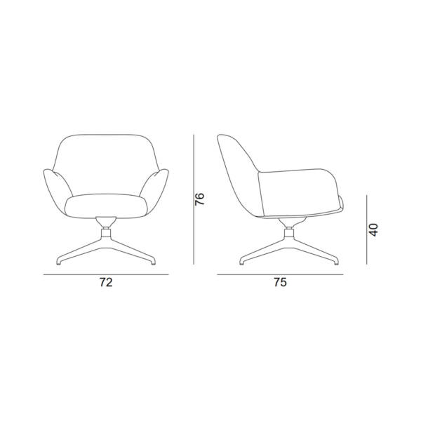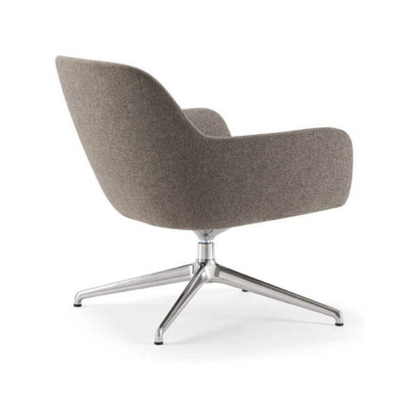 Baza fotelje u formi hromirane zvijezde sa zaokretnim mehanizmom. Sjedište i naslon u formi školjke punjene hladno livenom pjenom i tapacirana štofom kat. D02, bež boje 268. Dimenzije fotelje 72 x 75 x 76 cm.