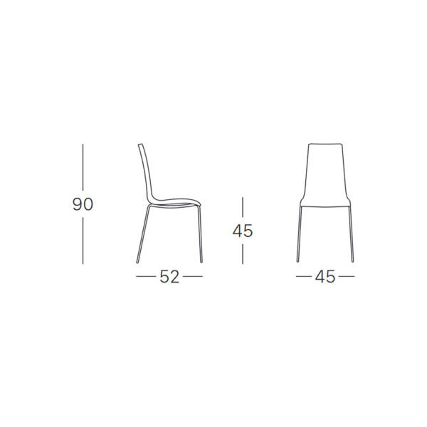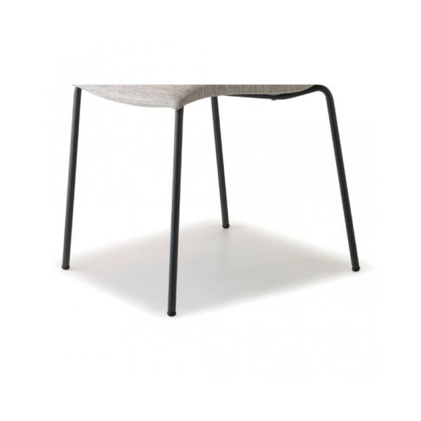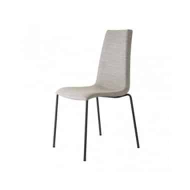 Baza u formi 4 metalne noge od cijevi Ø 16 mm lakirane epoksi prahom u antracit sivu boju (VA). Sjedište i naslon u formi školjke od tehnopolimera, punjeni hladno livanom pjenom i tapacirani negorivim štofom (T6 28). Stolice su samo za unutrašnju upotrebu. Mogu se slagati jedna na drugu (max. 4 kom). Dimenzije stolice 45 x 52 x 90 cm.