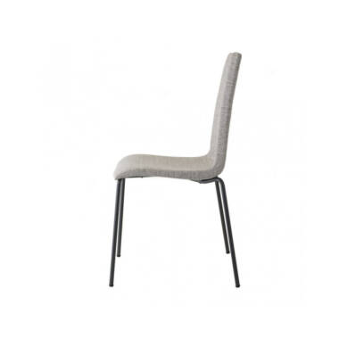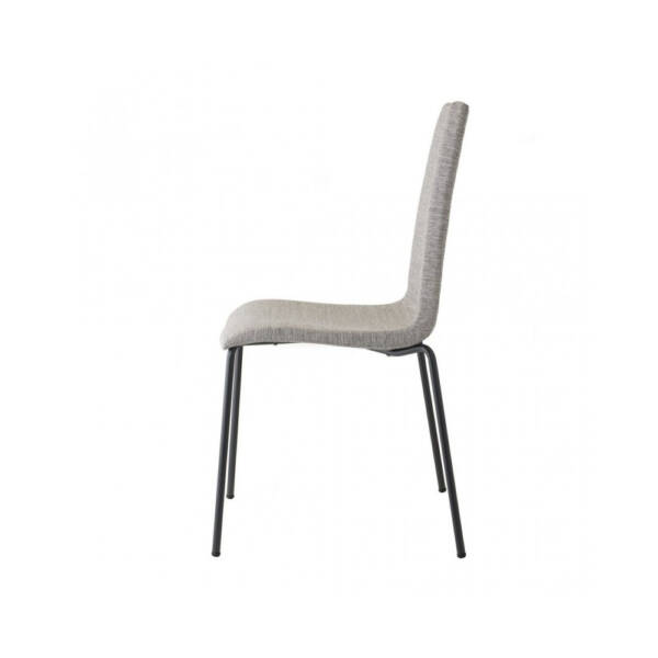 Stolica dimenzija 45 x 52 x 90 cm (ŠxDxV) sa 4 metalne noge u antracit boji i tapacirana u sivi štof.