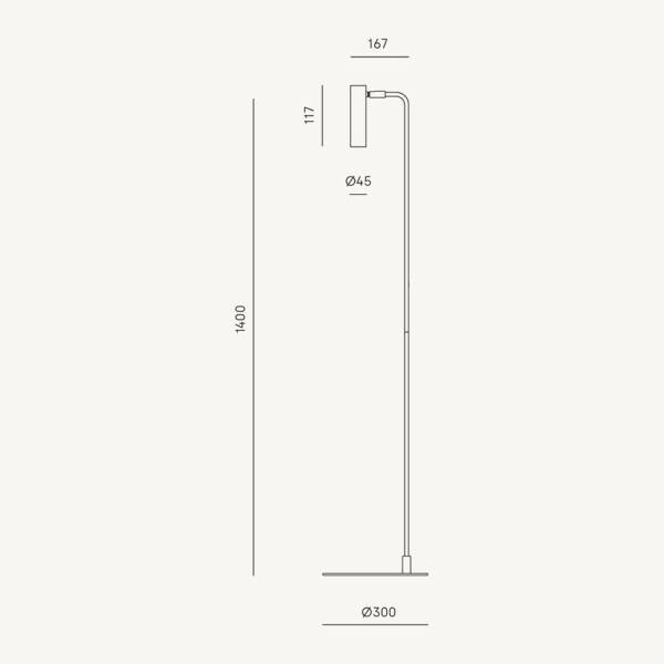 Podna lampa dimenzija 17 x 30 x 140 cm (ŠxDxV). Metal crni mat.