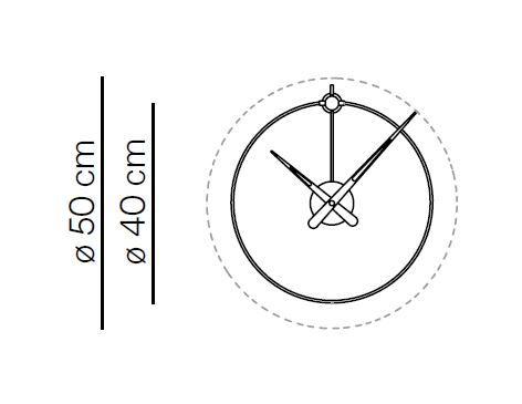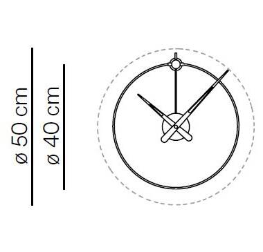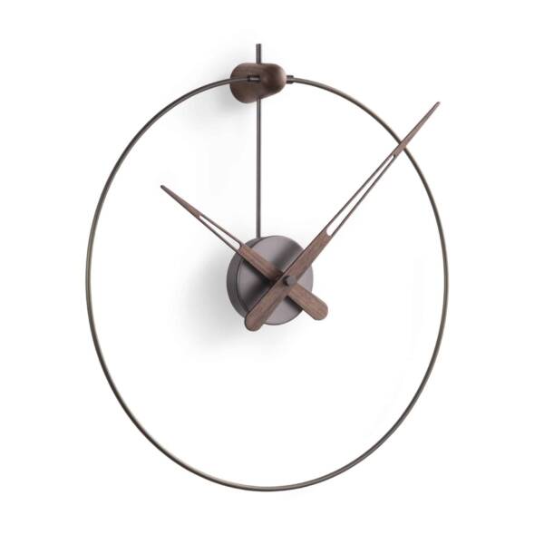 Zidni sat dimenzija Ø 50 cm. Metal grafit, drvo orah.