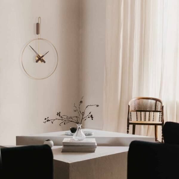 Zidni sat dimenzija h 63 cm, d 8 cm. Metal mesing, drvo orah.