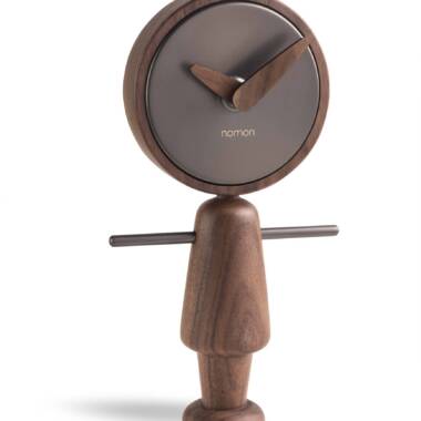 Stoni sat dimenzija 10 x 5 x 22 cm (ŠxDxV). Metal grafit, drvo orah