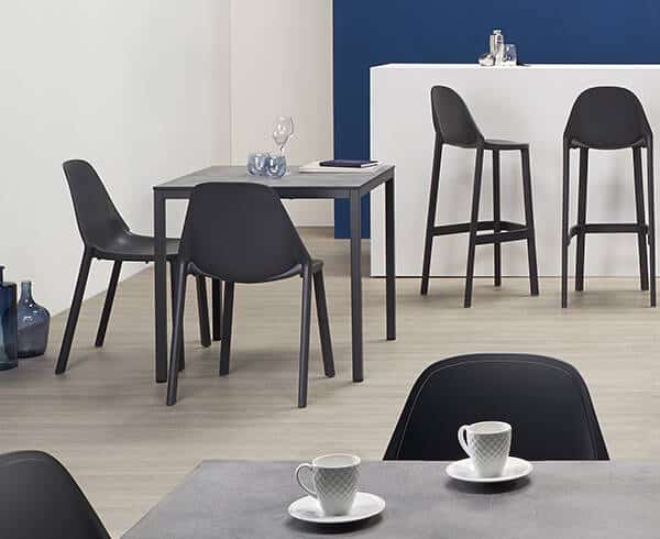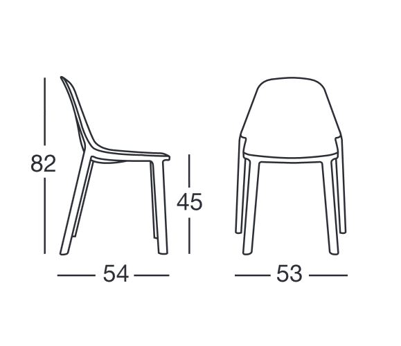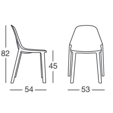 Dimenzija stolice 53x54x82 cm. Visina sjedišta 45 cm. Materijal tehnopolimer. Boja antracit.