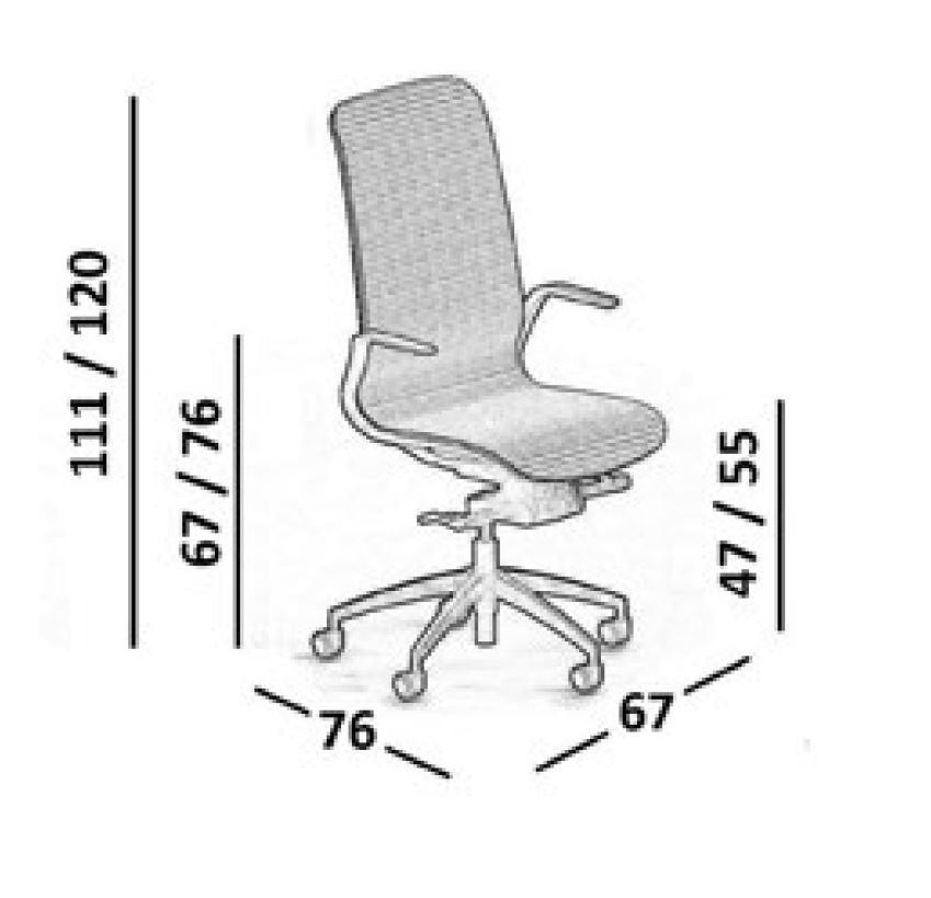 Dimenzija 67x76x111-120hcm. Visina sjedišta 47-55h cm. Sjedište i naslon za leđa tapacirani visokokvalitetnom mrežom. Ram stolice crne boje.