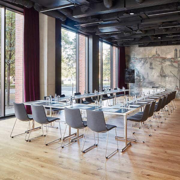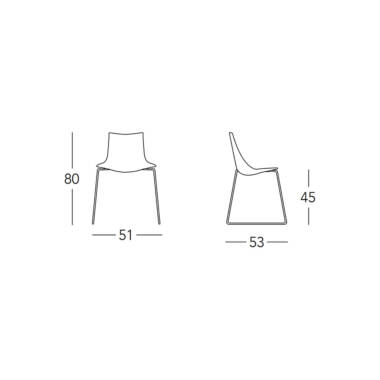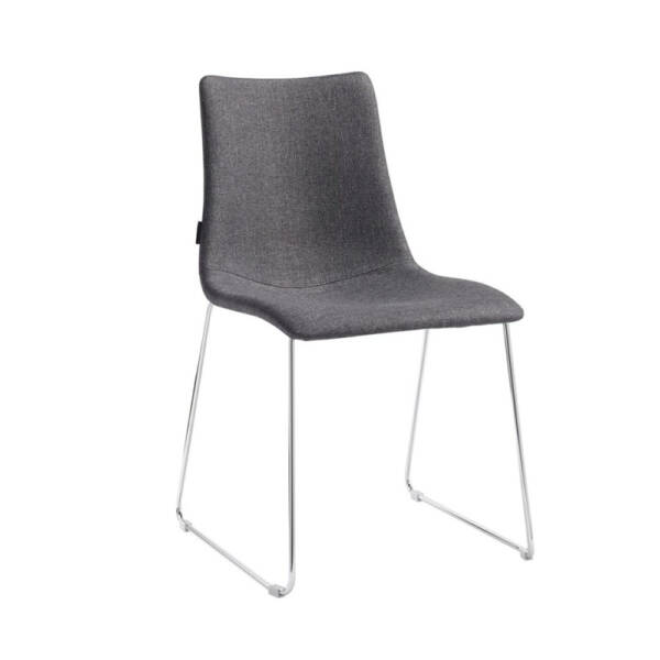 Baza u formi metalnih skija Ø 11 mm u hrom završnoj obradi (CR). Sjedište, naslon i rukonasloni punjeni hladno livanom pjenom i tapacirani vatrootpornim štofom (T6 28). Stolice su samo za unutrašnju upotrebu. Stolice se mogu slagati jedna na drugu (max 10 kom). Dimenzije stolice 51 x 53 x 80 cm.